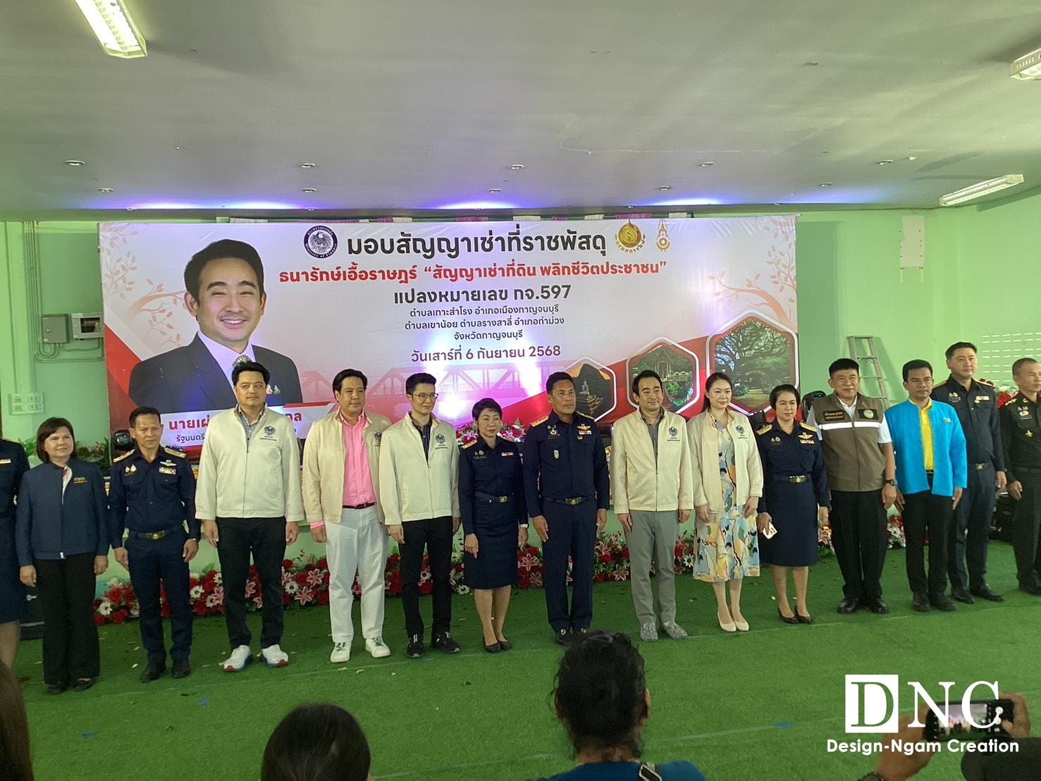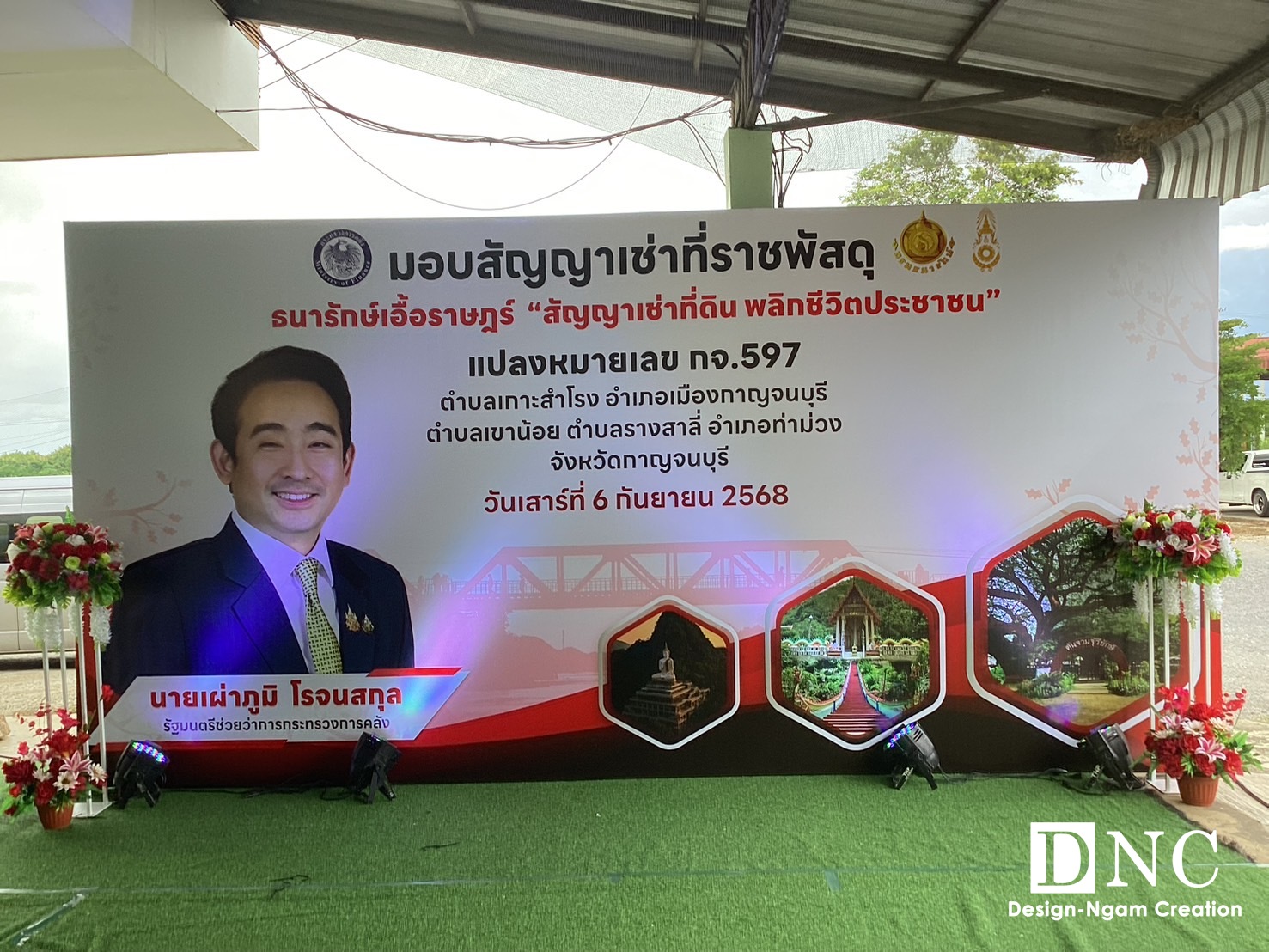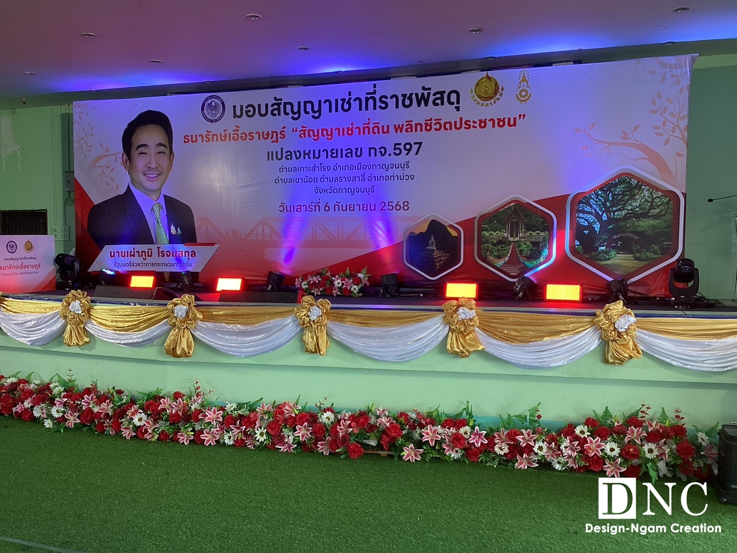 บริษัท ดีไซน์งาม ครีเอชั่น จำกัด ขอขอบพระคุณลูกค้าที่ไว้วางใจให้เราได้เป็นส่วนหนึ่งของ มอบสัญญาเช่าที่ราชพัสดุ ธนารักษณ์เอื้อราษฎร์ “สัญญาเช่าที่ดิน พลิกชีวิตประชาชน” วันที่ 6 กันยายน 2568 ณ องค์การบริหารส่วนตำบลเกาะสำโรง ต.เกาะสำโรง อ.เมือง จ.กาญจนบุรี โดยได้บริการในส่วนของ แบคดรอปเวที ตกแต่งเวที โพเดียม เครื่องเสียง ระบบไฟแสงสี เจ้าหน้าที่รันคิว เก้าอี้พลาสติก เก้าอี้ VIP เก้าอี้หลุยส์ กริมมิคพิธีเปิด ซุ้มประตู หญ้าเทียมและอื่นๆ บริษัท ดีไซน์งาม ครีเอชั่น จำกัด รู้สึกยินดีเป็นอย่างยิ่งที่ได้ร่วมเป็นส่วนหนึ่งให้งานครั้งสำคัญนี้เกิดขึ้น และหวังว่า จะได้บริการท่านอีกในโอกาสต่อไป ขอขอบพระคุณครับ/ค่ะ